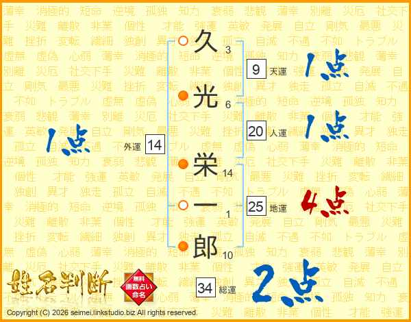 久光栄一郎さんの人運は20画の1点!