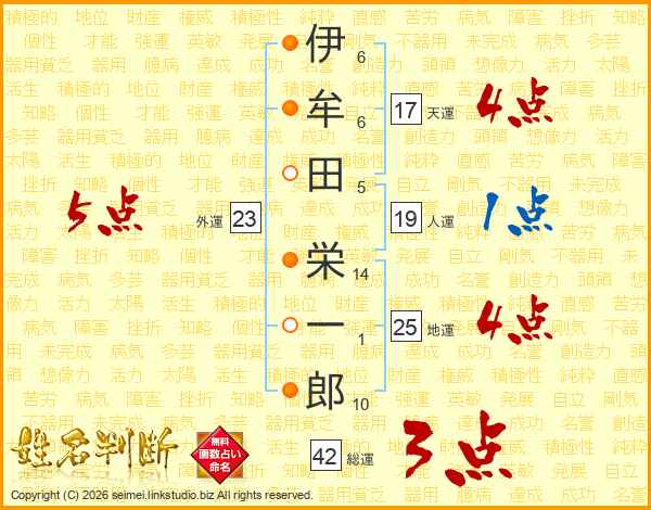 伊牟田栄一郎さんの地運は25画の4点!