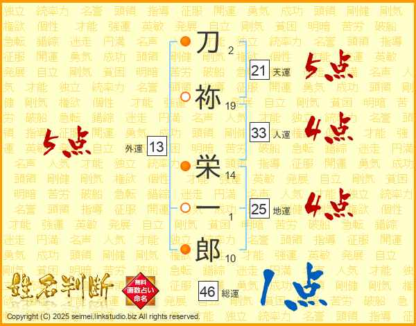 刀祢栄一郎さんの総運は46画の1点!