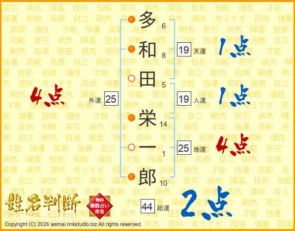 多和田栄一郎さんの総運は44画の2点!