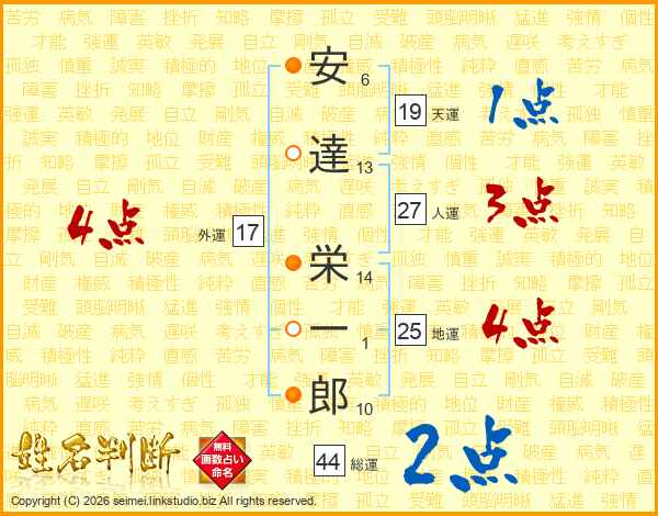 安達栄一郎さんの天運は19画の1点!