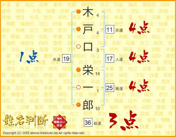 木戸口栄一郎さんの地運は25画の4点!