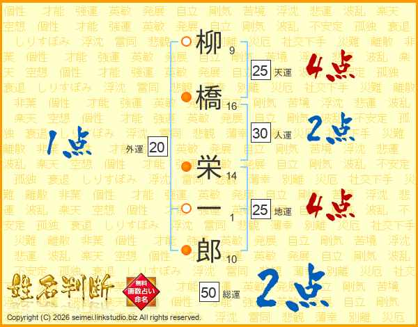 柳橋栄一郎さんの天運は25画の4点!