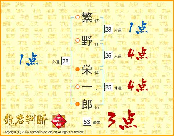 繁野栄一郎さんの人運は25画の4点!