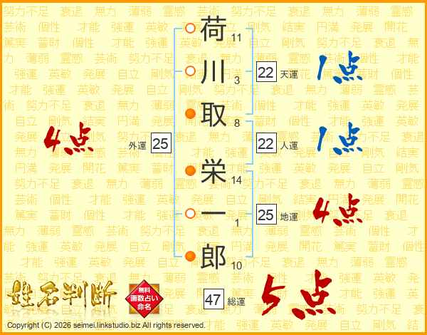 荷川取栄一郎さんの総運は47画の5点!