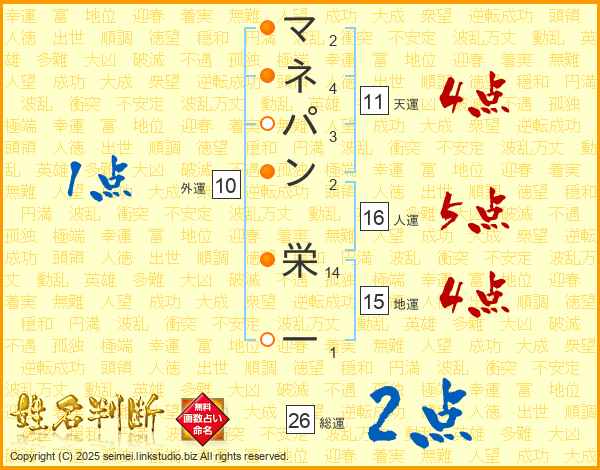 マ(2画)ネ(4画)パ(3画)ン(2画) 栄(14画)一(1画)