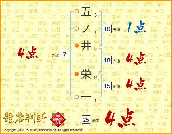 五ノ井栄一さんの総運は25画の4点!