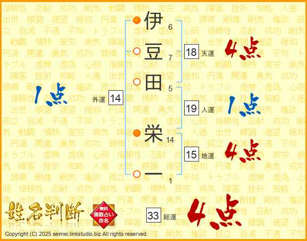 伊豆田栄一さんの総運は33画の4点!