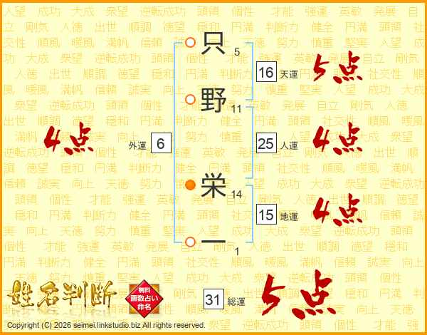 只野栄一さんの総運は31画の5点!