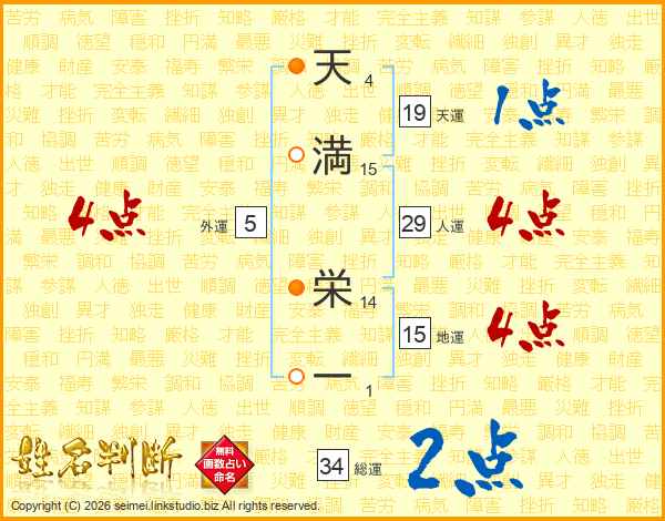 天満栄一さんの総運は34画の2点!