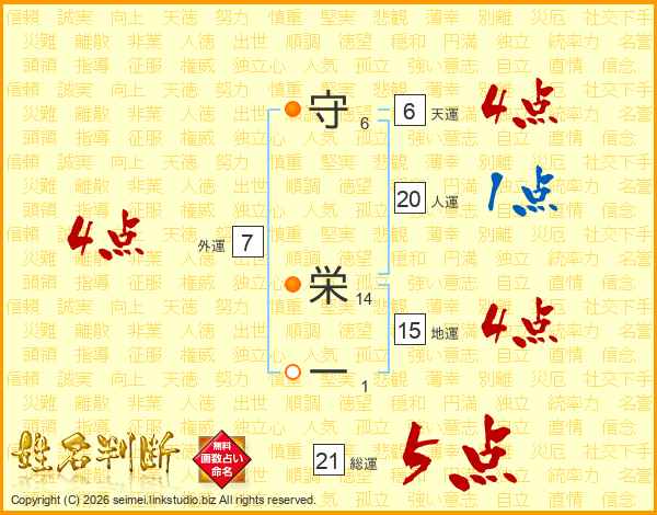 守栄一さんの総運は21画の5点!