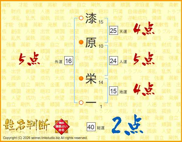 漆原栄一さんの人運は24画の5点!