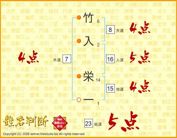 竹入栄一さんの総運は23画の5点!
