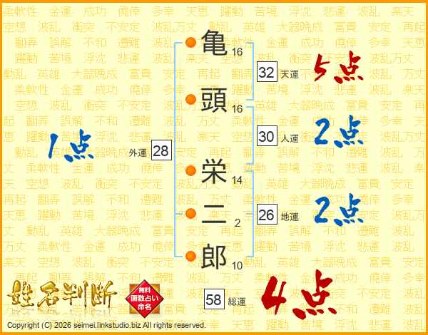 亀頭栄二郎さんの総運は58画の4点!