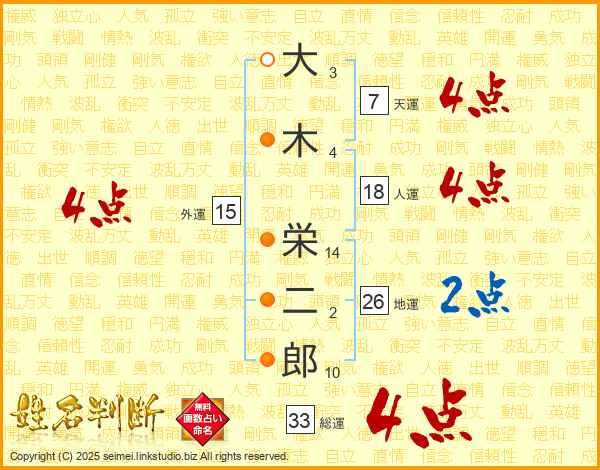 大木栄二郎さんの総運は33画の4点!