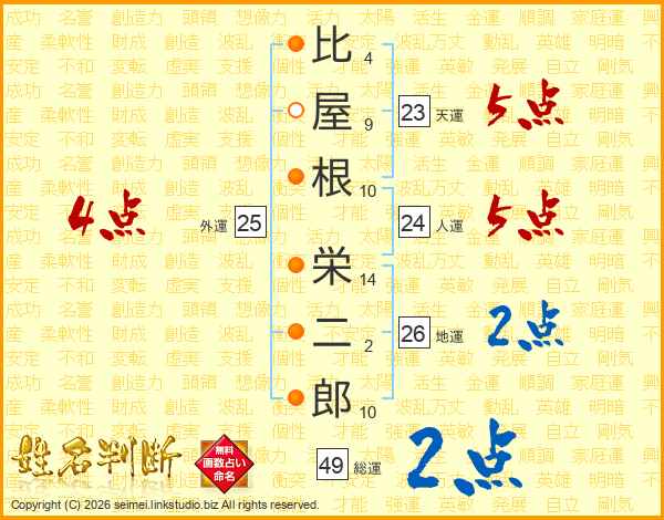 比屋根栄二郎さんの総運は49画の2点!