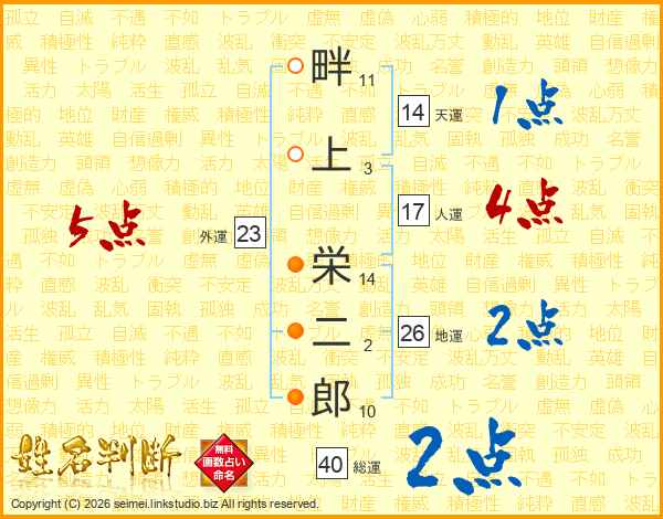畔上栄二郎さんの地運は26画の2点!