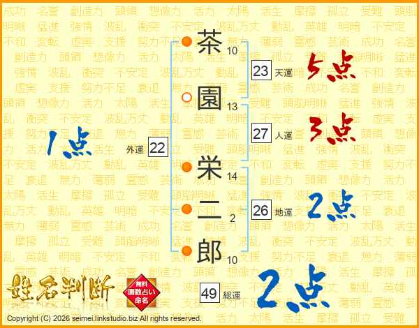 茶園栄二郎さんの総運は49画の2点!