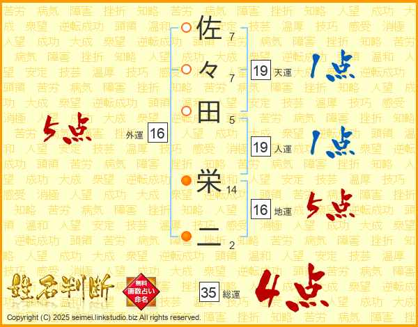 佐(7画)々(7画)田(5画) 栄(14画)二(2画)