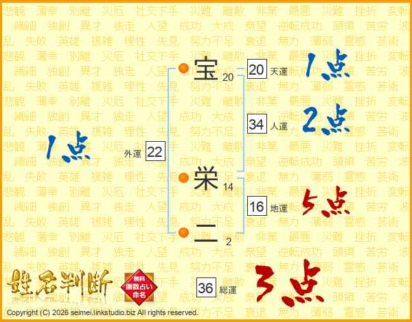 宝栄二さんの総運は36画の3点!