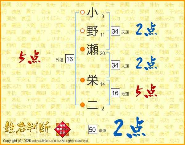 小野瀬栄二さんの天運は34画の2点!