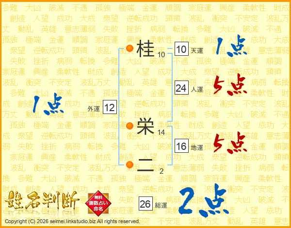 桂栄二さんの総運は26画の2点!