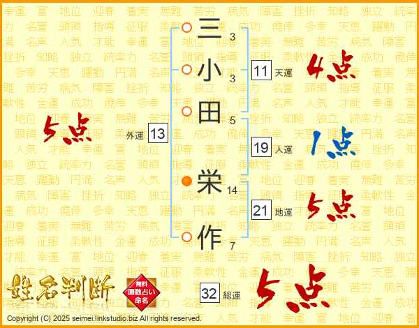 三小田栄作さんの総運は32画の5点!