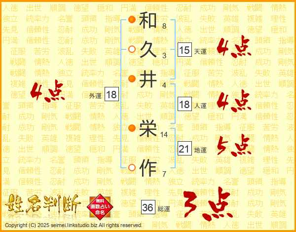 和(8画)久(3画)井(4画) 栄(14画)作(7画)