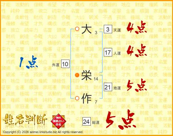 大栄作さんの総運は24画の5点!