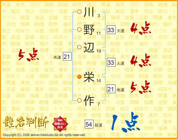 川野辺栄作さんの総運は54画の1点!