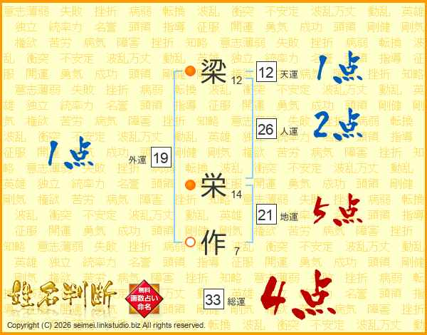 梁栄作さんの総運は33画の4点!