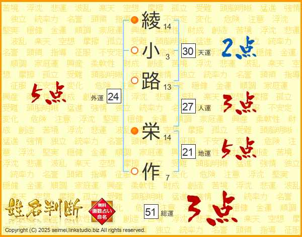 綾小路栄作さんの総運は51画の3点!
