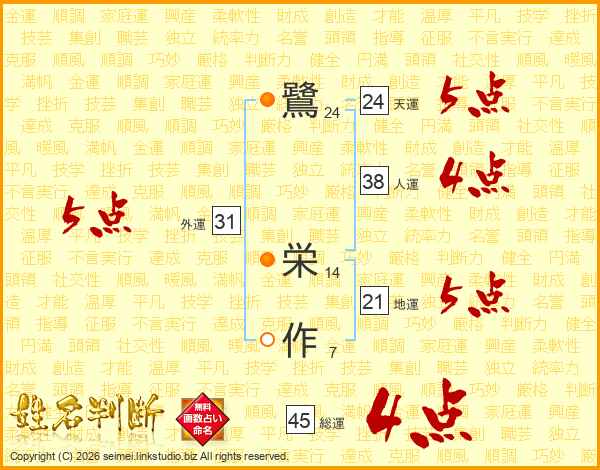鷺栄作さんの総運は45画の4点!