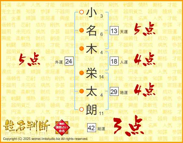 小名木栄太朗さんの総運は42画の3点!