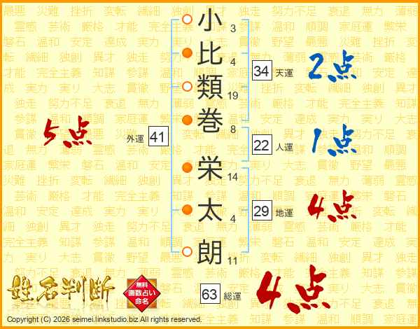 小比類巻栄太朗さんの総運は63画の4点!