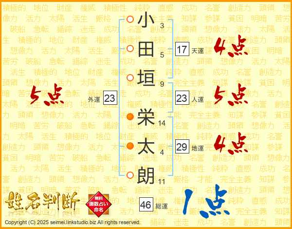 小田垣栄太朗さんの天運は17画の4点!