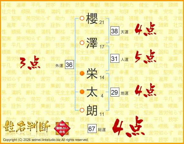 櫻澤栄太朗さんの総運は67画の4点!