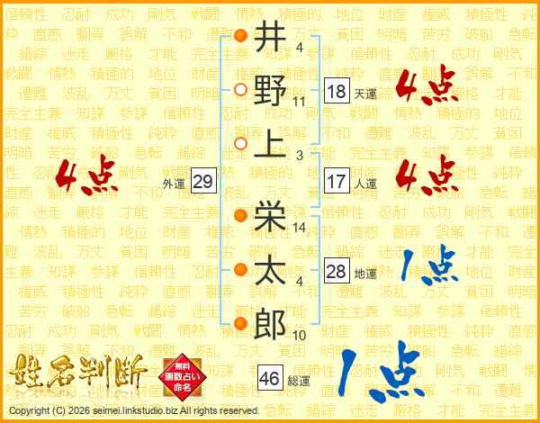 井野上栄太郎さんの総運は46画の1点!