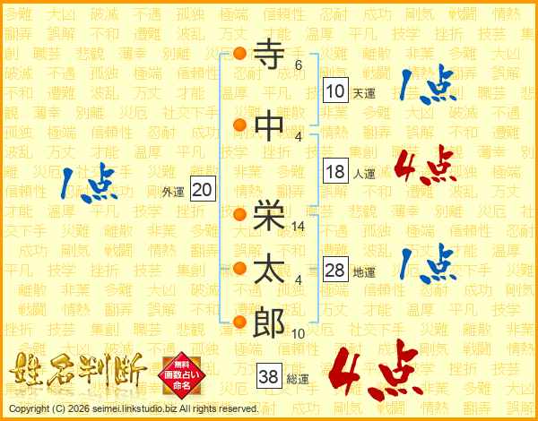 寺(6画)中(4画) 栄(14画)太(4画)郎(10画)
