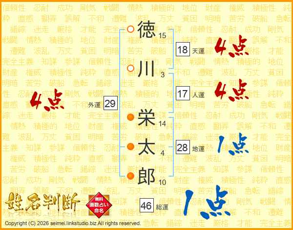 徳川栄太郎さんの総運は46画の1点!