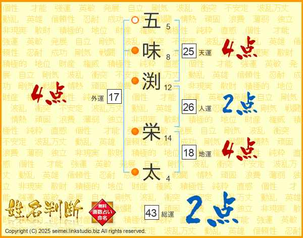 五味渕栄太さんの天運は25画の4点!