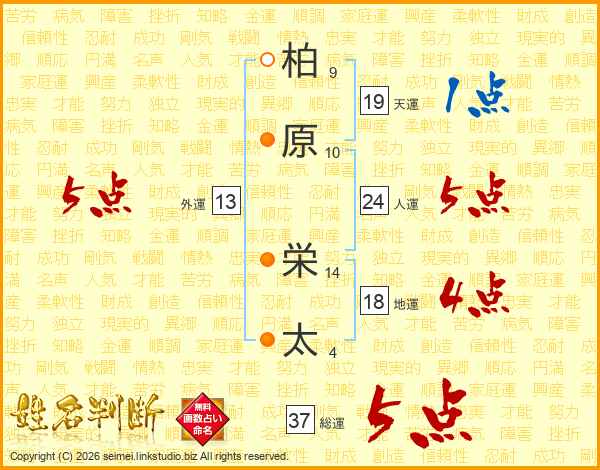 柏原栄太さんの総運は37画の5点!