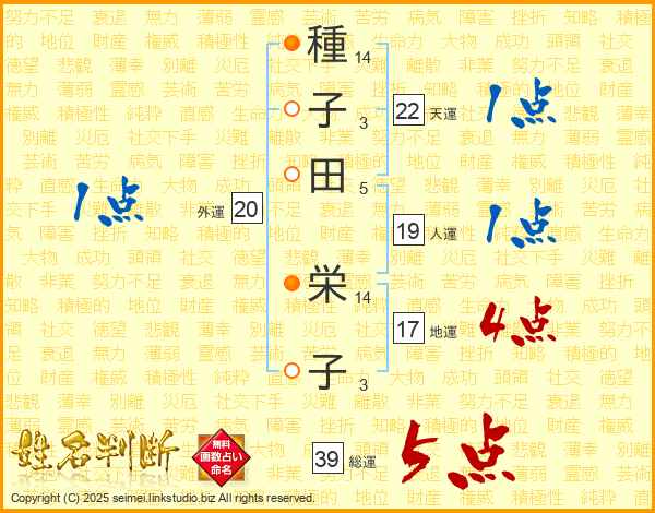 種子田栄子さんの総運は39画の5点!