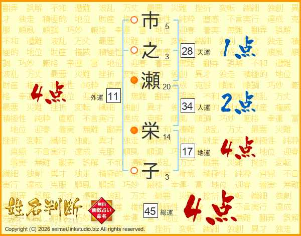 市之瀬栄子さんの総運は45画の4点!