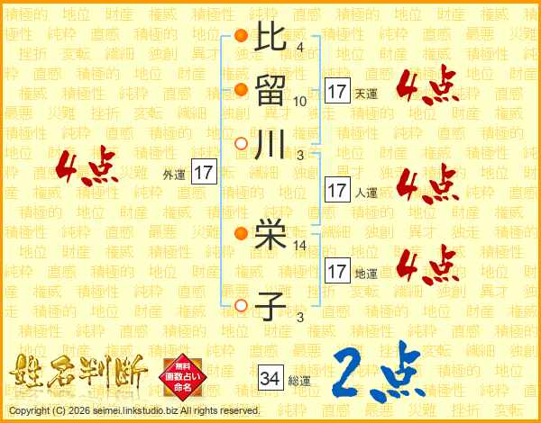 比留川栄子さんの外運は17画の4点!