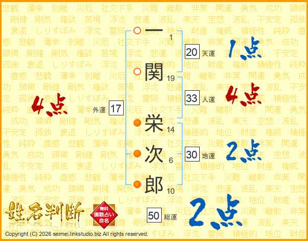 一関栄次郎さんの人運は33画の4点!