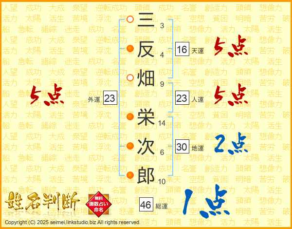 三(3画)反(4画)畑(9画) 栄(14画)次(6画)郎(10画)