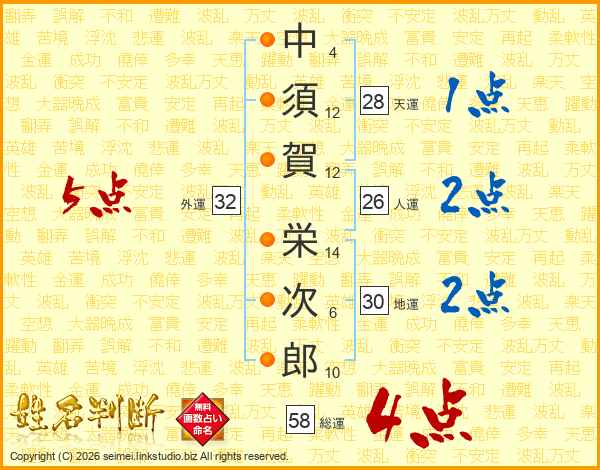 中須賀栄次郎さんの総運は58画の4点!