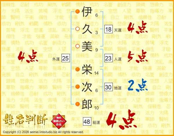 伊久美栄次郎さんの総運は48画の4点!