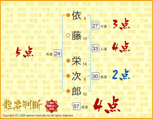 依(8画)藤(19画) 栄(14画)次(6画)郎(10画)